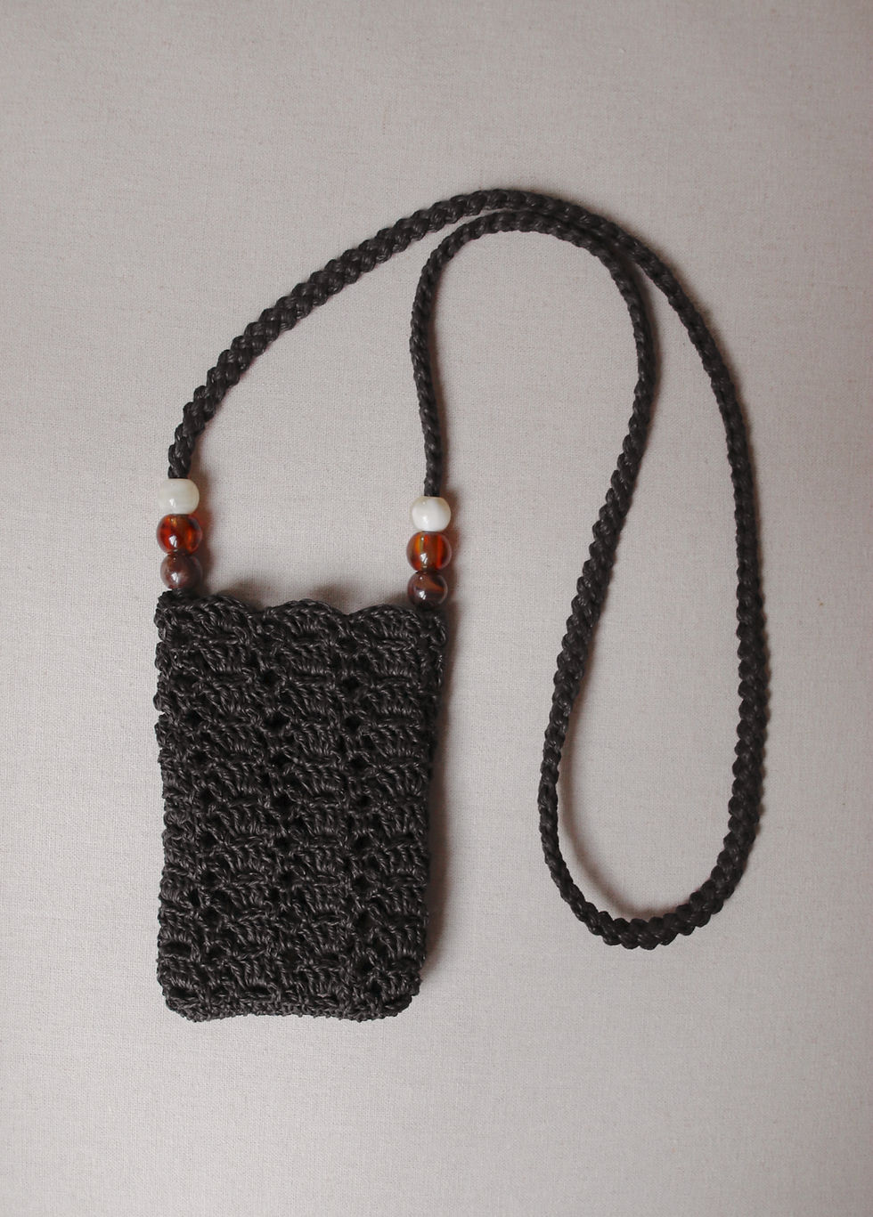 Our crochet pouch is 100% handmade and is big enough to fit your phone, keys and a small wallet.